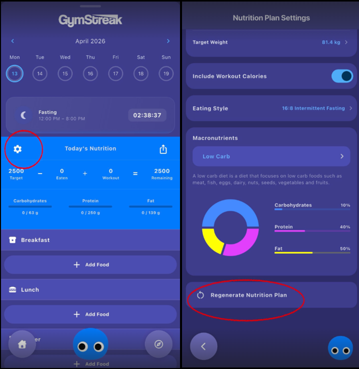 On the next page, at the bottom part, select ‘Regenerate Nutrition Plan’